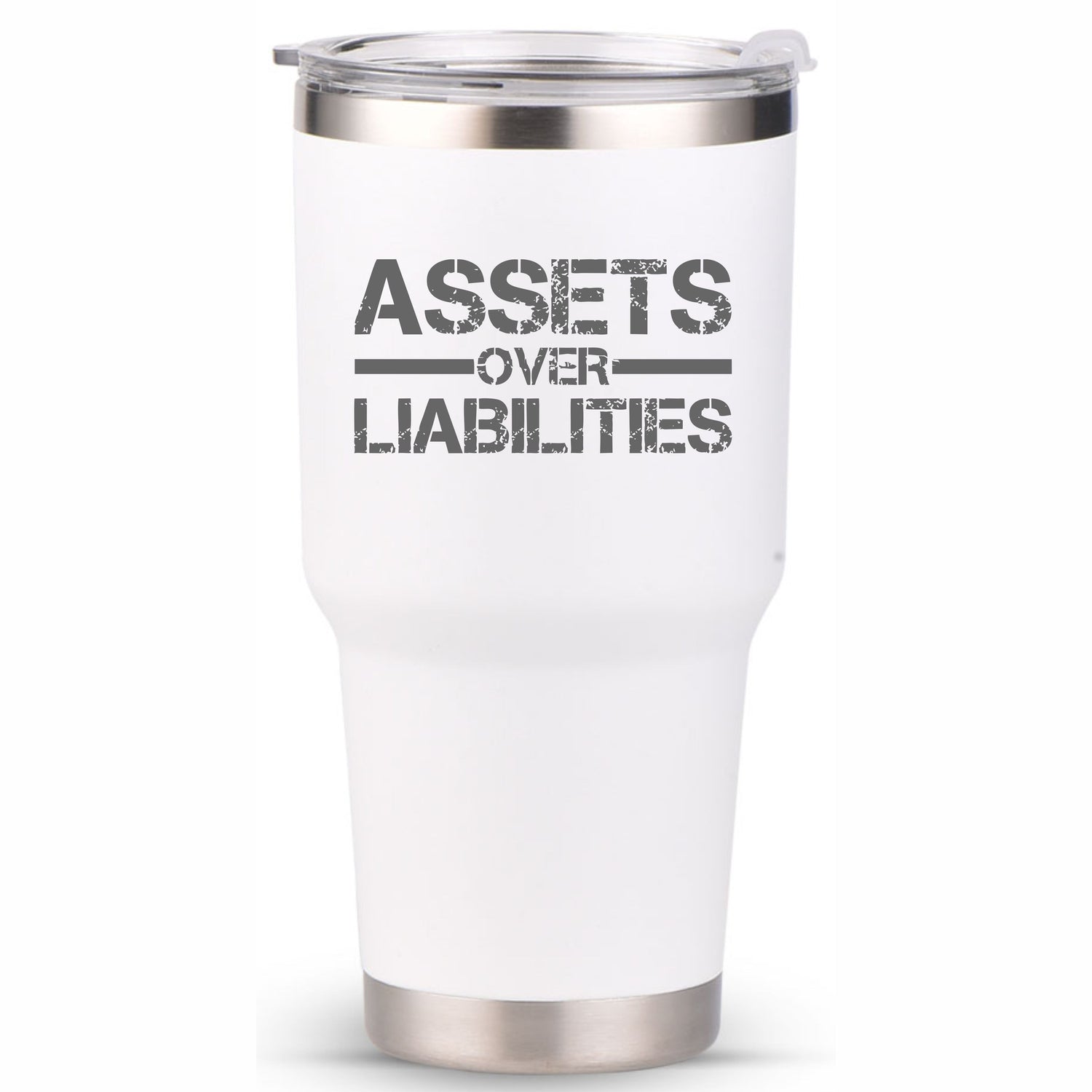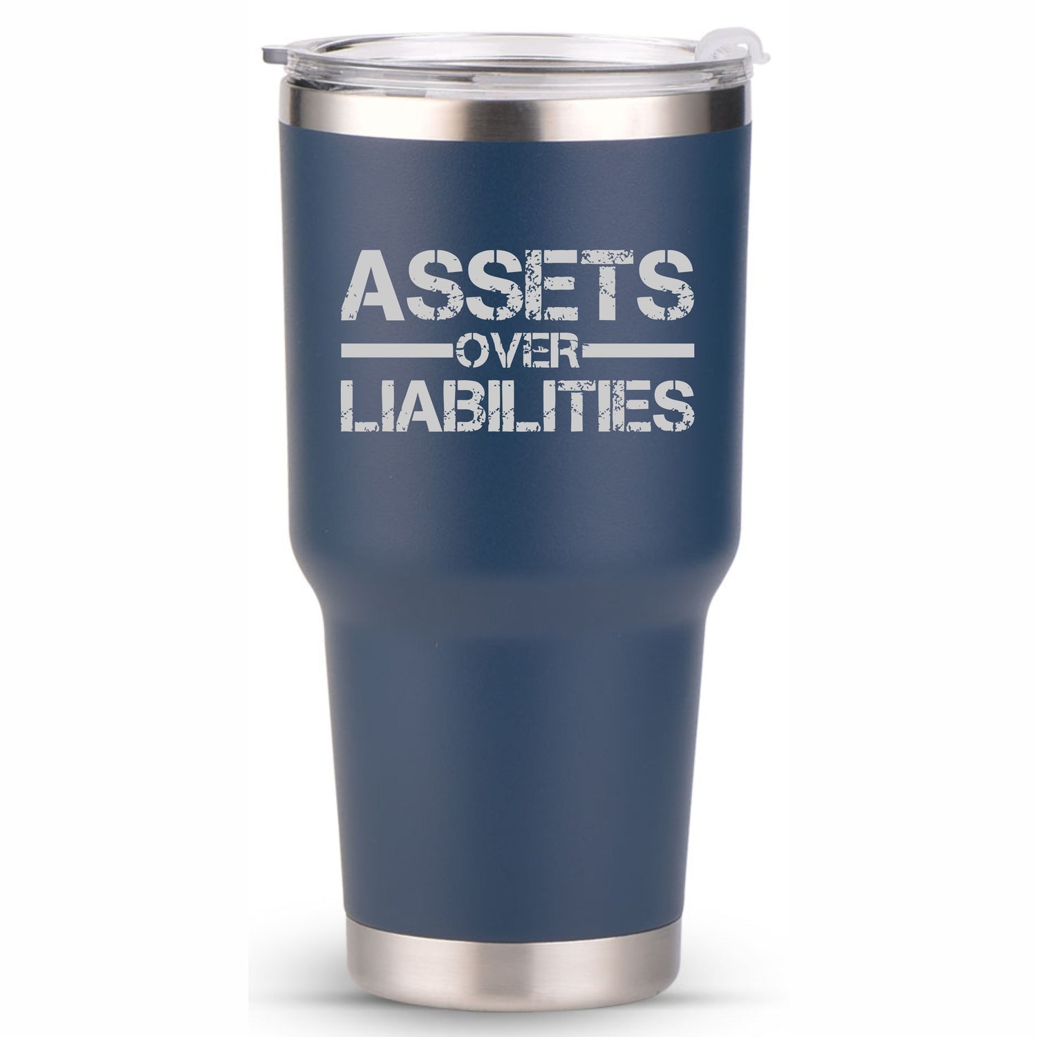 Elevate your beverage experience with our custom laser-engraved tumblers. Crafted from premium stainless steel, these tumblers keep drinks hot or cold for hours while showcasing the Assets Over Liabilities logo.