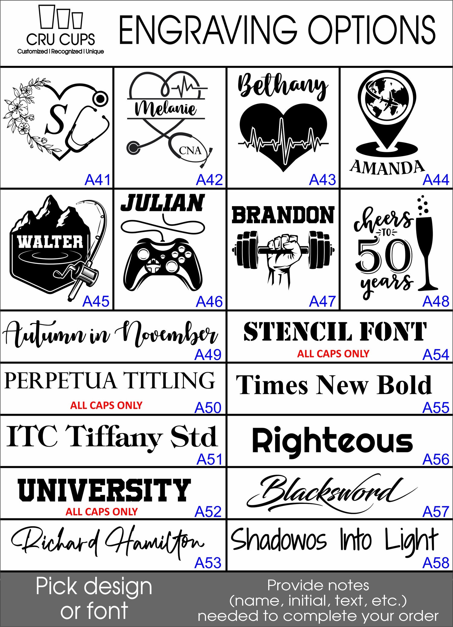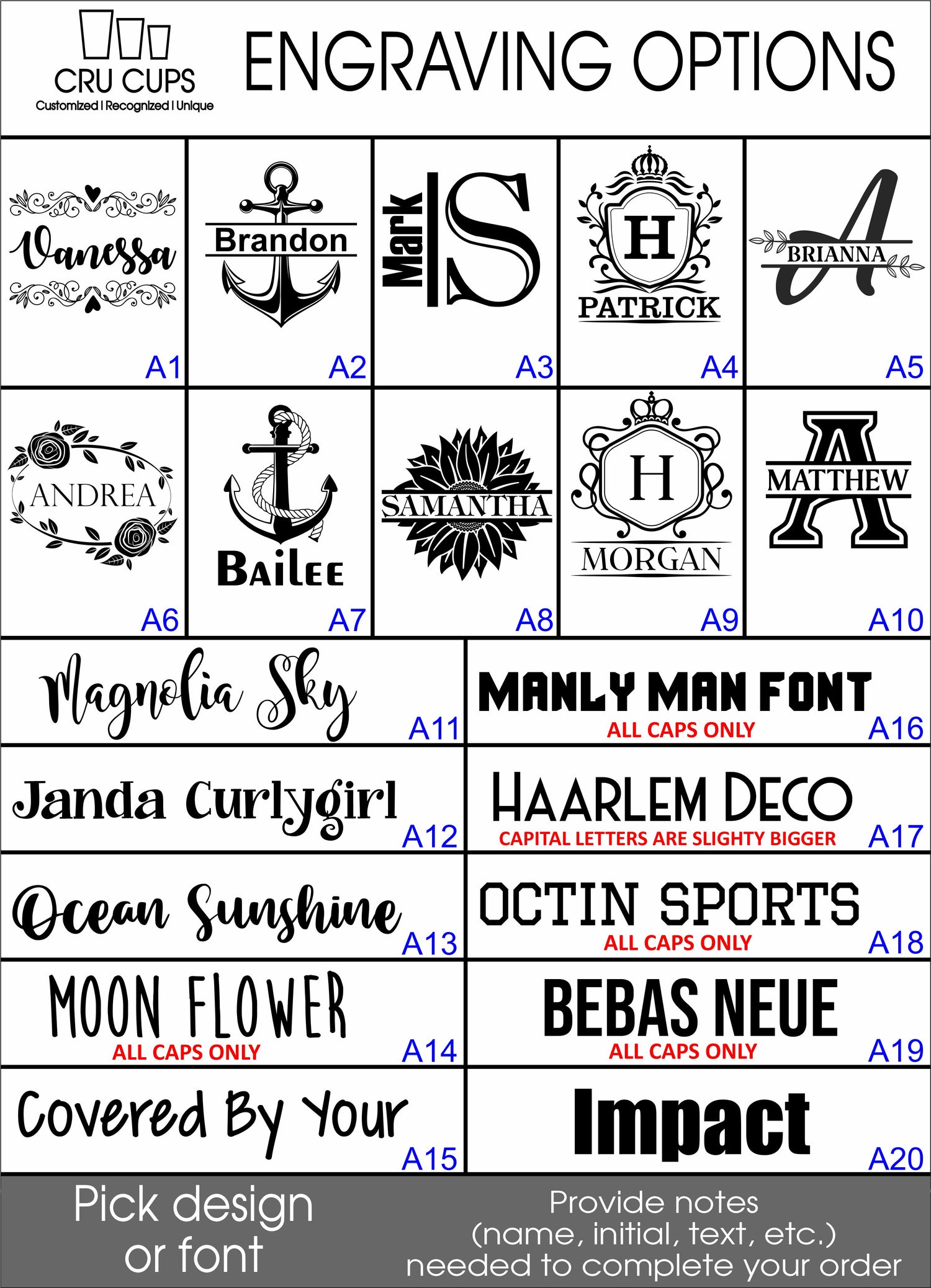 - Choose your preferred Font OR Design (See photos 4-6 for options)